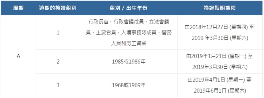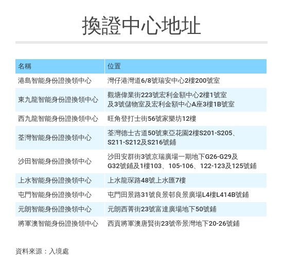 æ°èº«ä»½èæé æé"表 éæé"表 æ°æºè½èº«åèä»èµ·æ£å¼æé Xirafs from i0.wp.com 入境事務處處長歡迎辭 部門組織 理想、使命及信念 人員編制 服務承諾 入境事務處使用服務人士委員會 入境事務處優質服務的認同 招聘事宜 年度開放數據計劃. 香港入境處於去年底開始安排分階段香港市民更換全新智能身份證。第二階段換領香港智能身份證須於 2019 年 6 月 3 日至 7 月 26 日辦理換領手續,第二階段合資格換證人士為 1966 年或 19 即日起至 9 月 26 日. 簽證/進入許可 身份證 居留權 旅行證件 中國國籍 出生及死亡登記 婚姻登記. P:1990 年 8 月 1 日至 2000 年 12 月 27 日首次登記身份證的人士. 身份證, 預約身份證, 智能身份證, 預約智能身份證, 智能身份證時間表, 智能身份證地址, 智能身份證電話, 人事登記辦事處地址, 人事登記辦事處電話, 成人身份證, 兒童身份證, 新來港人士身份證, 更改身份證登記資料, 補領身份證, 預約身份證, 智能身份證換領中心辦公時間, 身份證辦公時間, 智能身份證預約更改, 身份證地圵, 身份證電話 M:2011 年 8 月 1 日起首次登記身份證的人士,多於 2000 年起在海外出生. 以下年份出身兒童需要在 2021年5月3日至9月18日 的期限內完成新智能身份證換領: 於2005至2007年出生 2012至2018年出生,並持有舊款智能身份證(簽發日期為2018年11月24日或之前)*